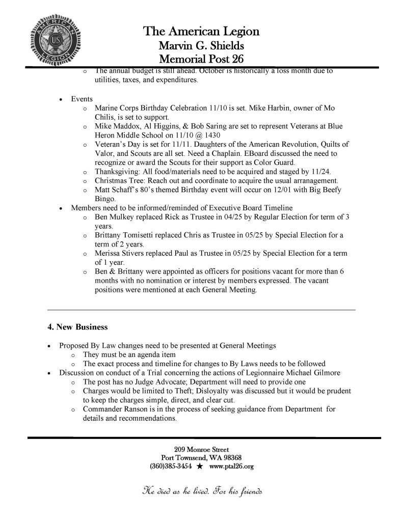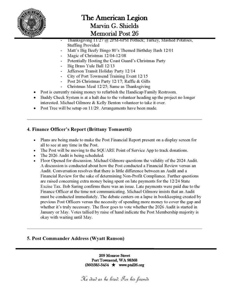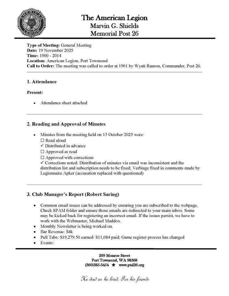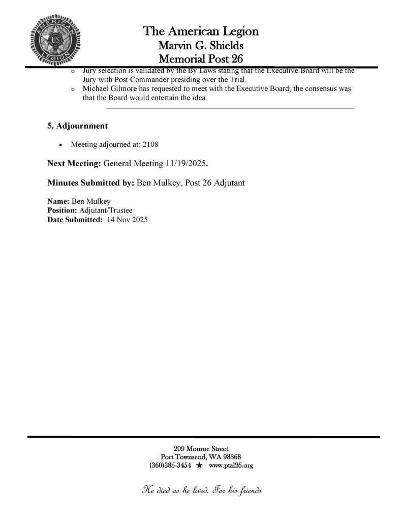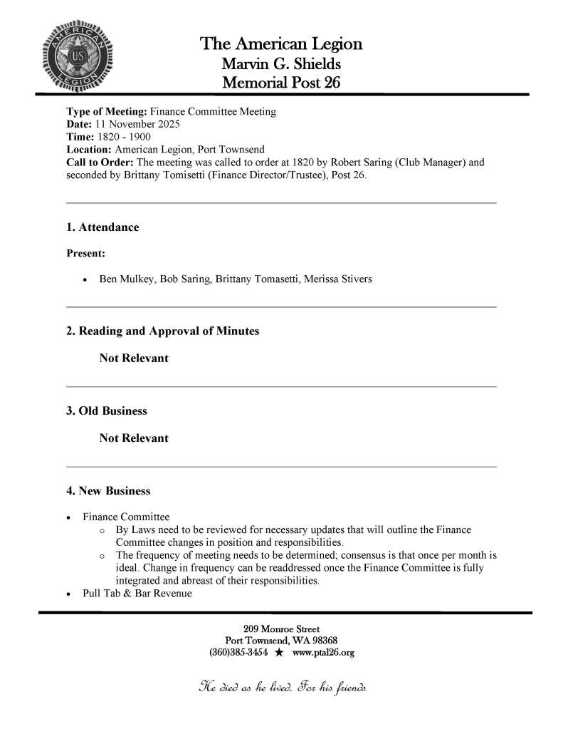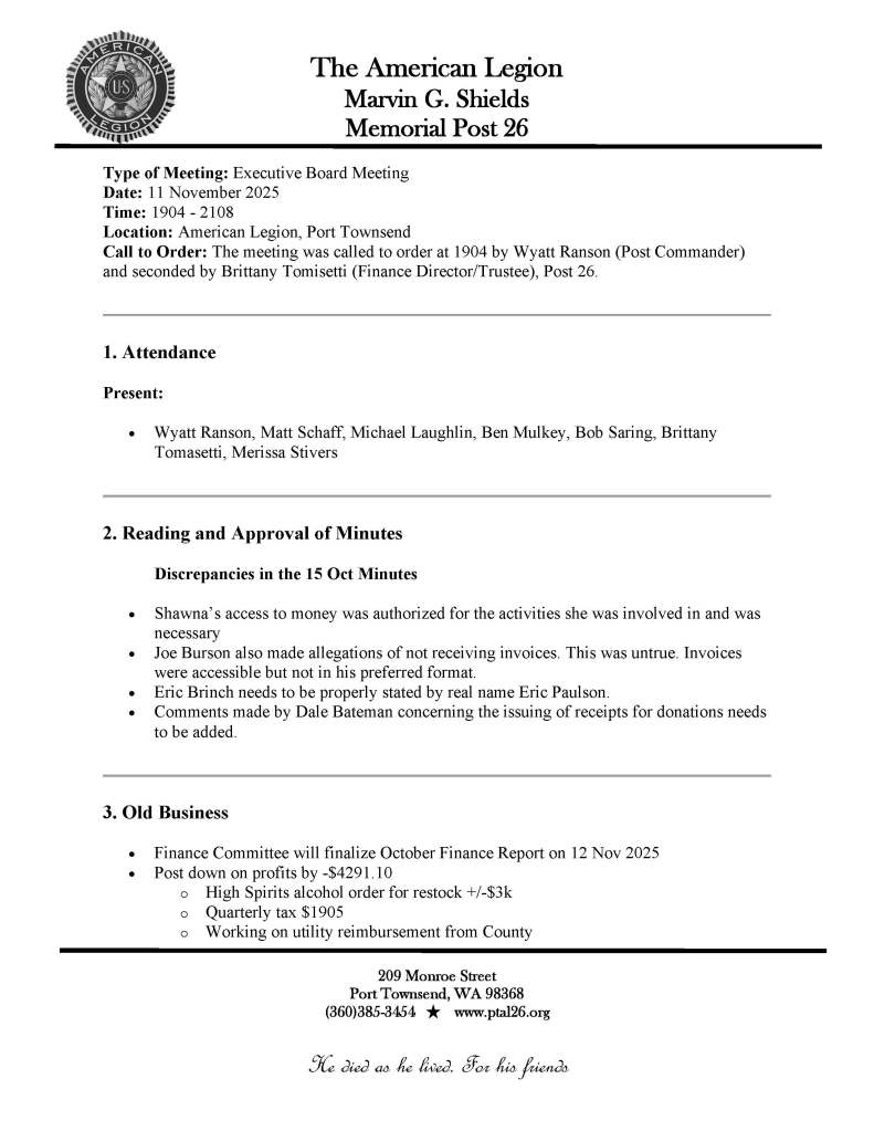 11 Nov. 2025 Business Meeting Minutes